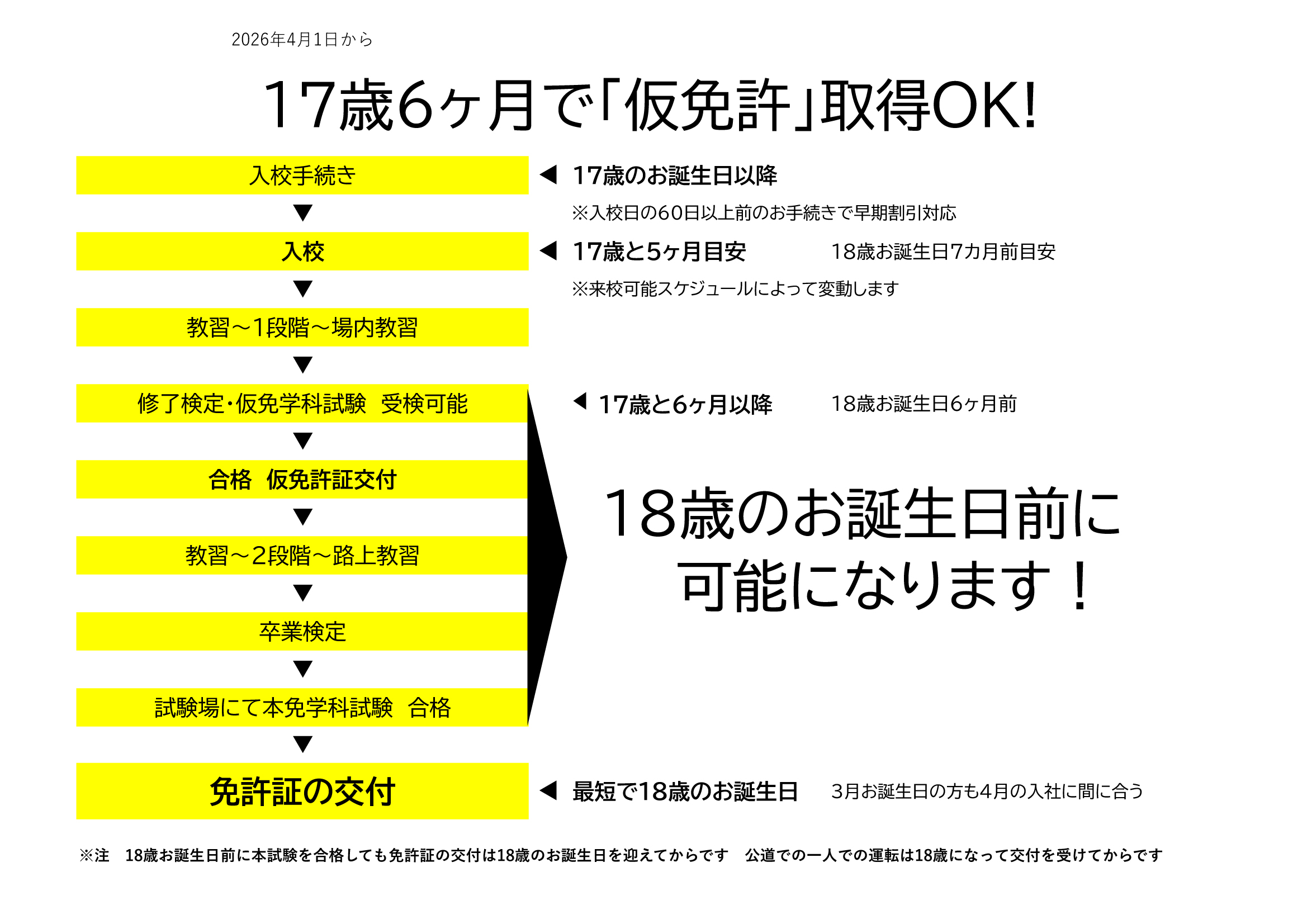 仮免許取得後18歳を待たずに卒業、本免学科試験を受けることが可能になります